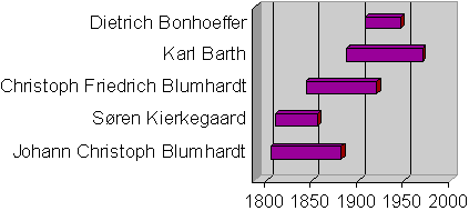 The Blumhardts, a father-and-son team, were solidly rooted in Reformed Pietism. Both were trained in the Lutheran tradition, and quickly got in trouble with the church for preaching a radical return to biblical living. Although both were mere pastors, their writings influenced a number of later theologians, including Barth and Bonhoeffer.