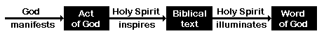 Theologians have divided the doctrine of Revelation into a process characterized by three stages: Manifestation, Inspiration, and Illumination. The figure above gives a simplified overview but other factors, such as preaching, mission, and evangelism also play a part in appropriating the Word of God. Before discussing these stages, however, it is necessary to present an important caveat:
